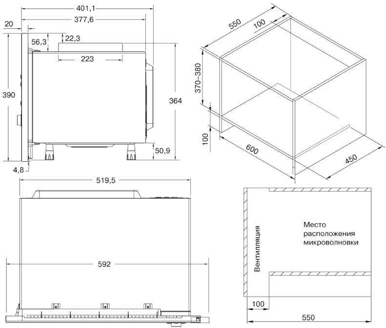 KRONA ESSEN 60 IX - схема встраивания с размерами к микроволновой печи на разных языках на Hausdorf