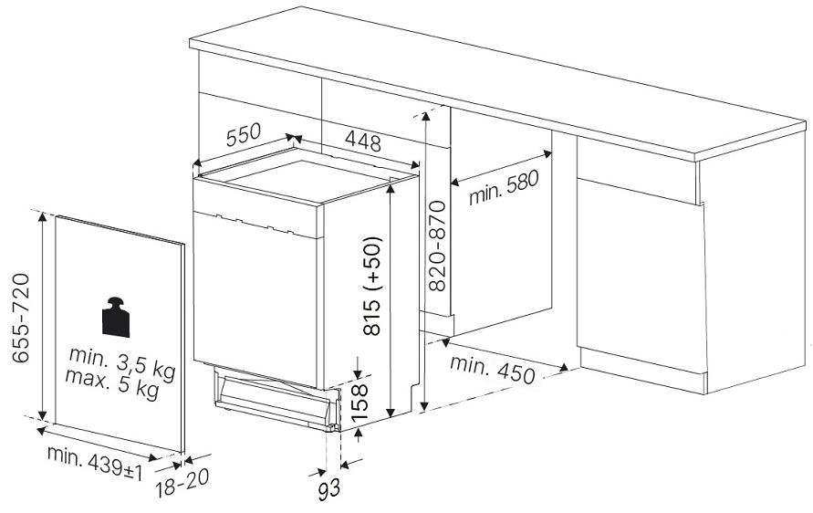 Kuppersbusch G 4320.0 v - схема встраивания с размерами к посудомоечной машине на разных языках на Hausdorf