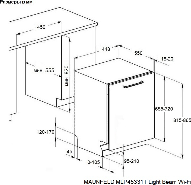 Maunfeld MLP45331T Light Beam Wi-Fi - схема встраивания к посудомоечной машине на разных языках на Hausdorf