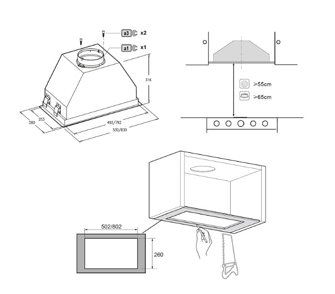 Korting KHI 90945 DGN - схема с размерами версия 2 к вытяжке на разных языках на Hausdorf