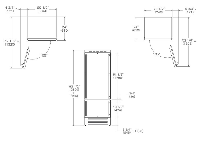 Bertazzoni REF755BBRPTT/24 - схема с размерами версия 2 к холодильнику на разных языках на Hausdorf