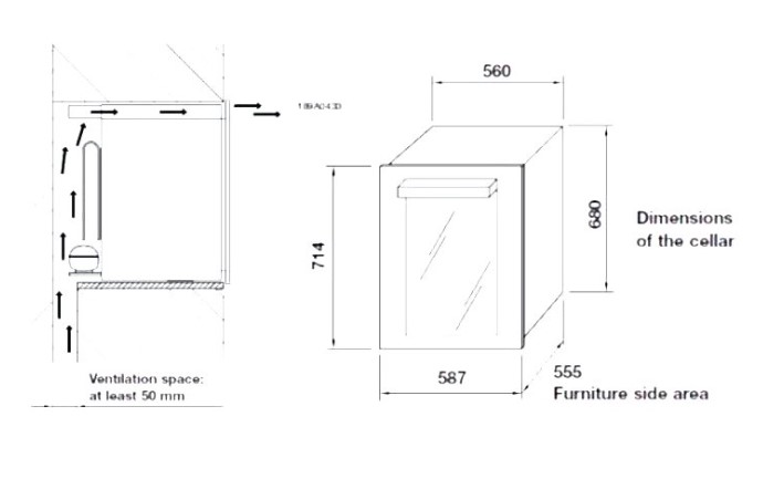 Lofra ZBNM36T две зоны - схема с размерами к винному шкафу на разных языках на Hausdorf