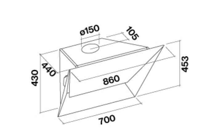 Falmec Prisma 85 Black - схема с размерами к вытяжке на разных языках на Hausdorf