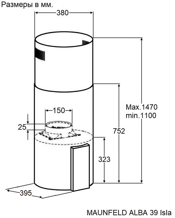 Maunfeld ALBA 39 Isla Gold - схема с размерами к вытяжке на разных языках на Hausdorf