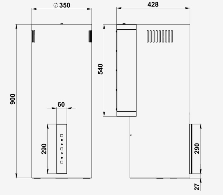 Zigmund Shtain K 160.4 W - схема с размерами версия 2 к вытяжке на разных языках на Hausdorf