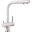 Внутри крана помещается шланг, который можно растянуть, чтобы достать струей воды до второй чаши мойки или тщательно сполоснуть посуду.