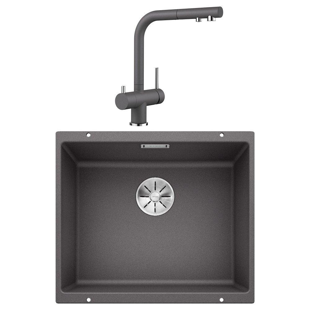 Комплект Blanco (мойка SUBLINE 500-U SILGRANIT + FONTAS-S II SILGRANIT темная скала) в Краснодаре