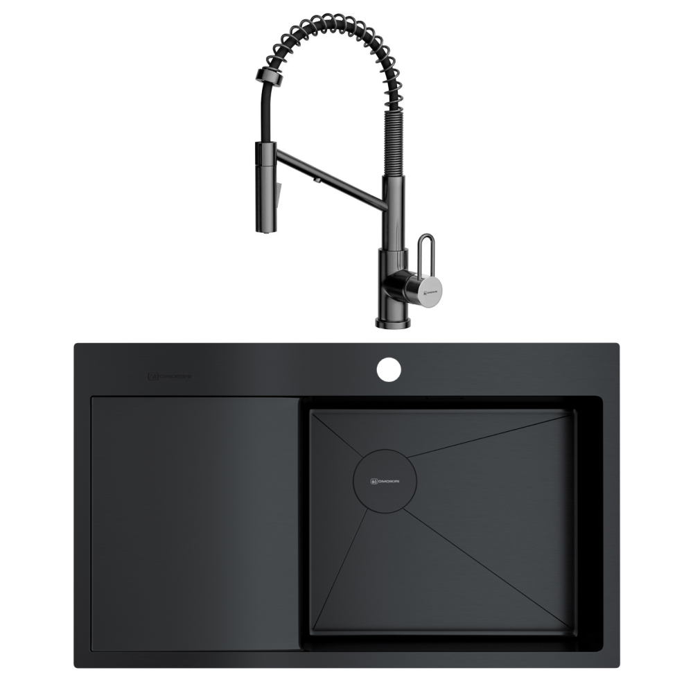 Комплект Omoikiri (мойка AKISAME 86 SIDE GB-R + смеситель MIKAWA 2 PLUS-SB GB) в Краснодаре