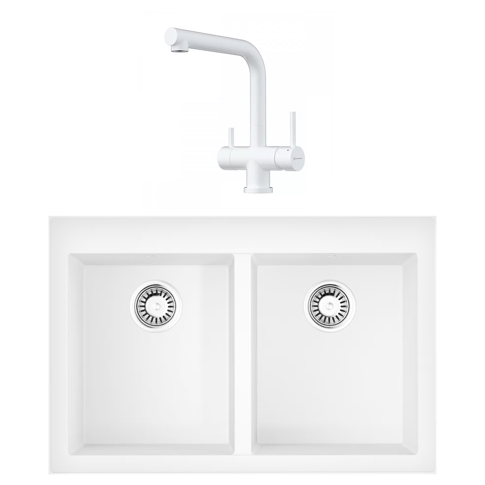 Комплект Omoikiri (мойка BOSEN 80-2-WH + смеситель TAKAMATSU-S PW) в Краснодаре